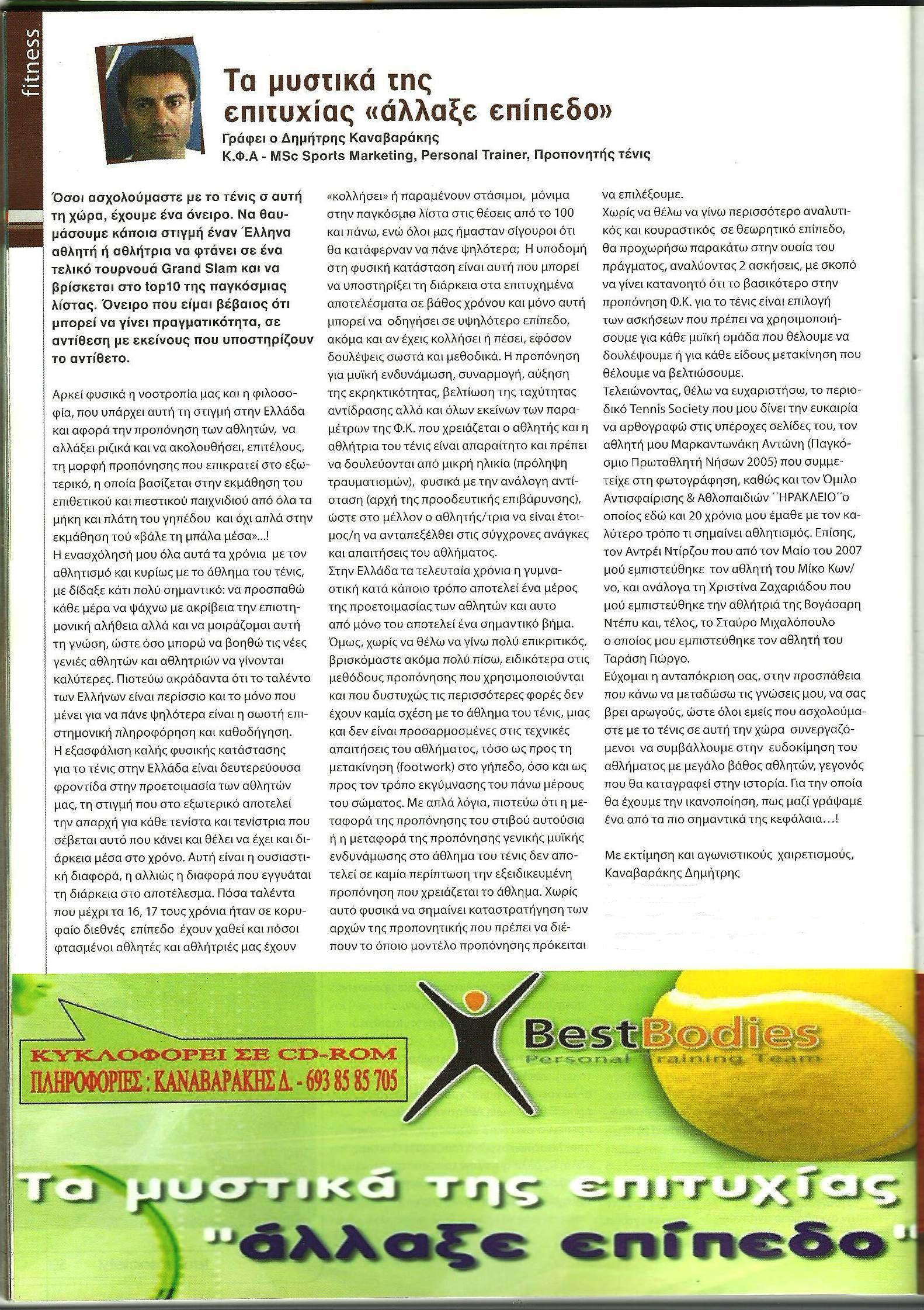 Φίλες και φίλοι μέσα από το blog μου και την καινούργια αυτή κατηγορία, θα ταξιδέψουμε πίσω στο χρόνο για να ξαναδούμε τα άρθρα μου από την στήλη μου »Fitness» για το περιοδικό Tennis Society που δυστυχώς πλέον δεν εκδίδεται.